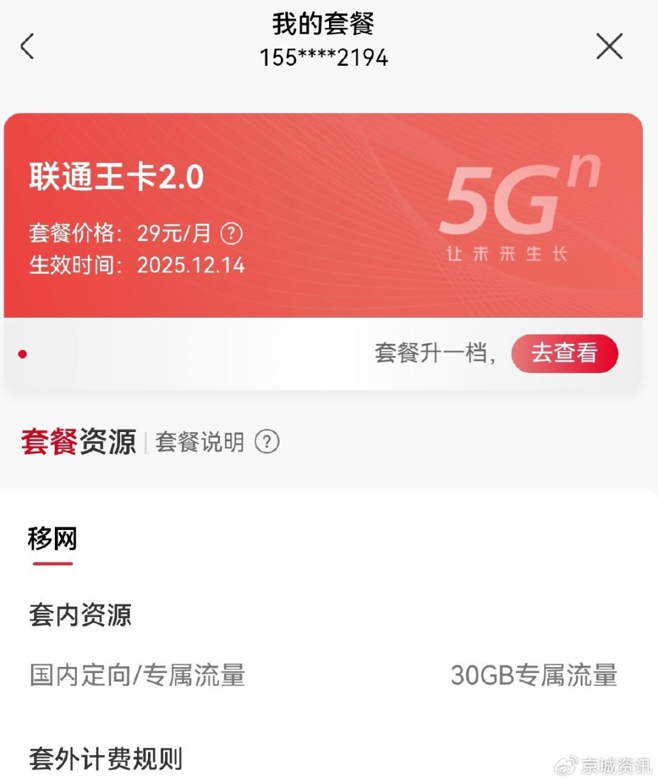 12月14日,北京联通木樨园营业厅工作人员上门送卡,并再次要求王先生现场充值100元。王先生当场询问套餐内容,工作人员表示无法查看。卡片激活后,王先生发现实际套餐为29元30G定向流量,且无任何通话分钟数,与商家宣传内容严重不符。